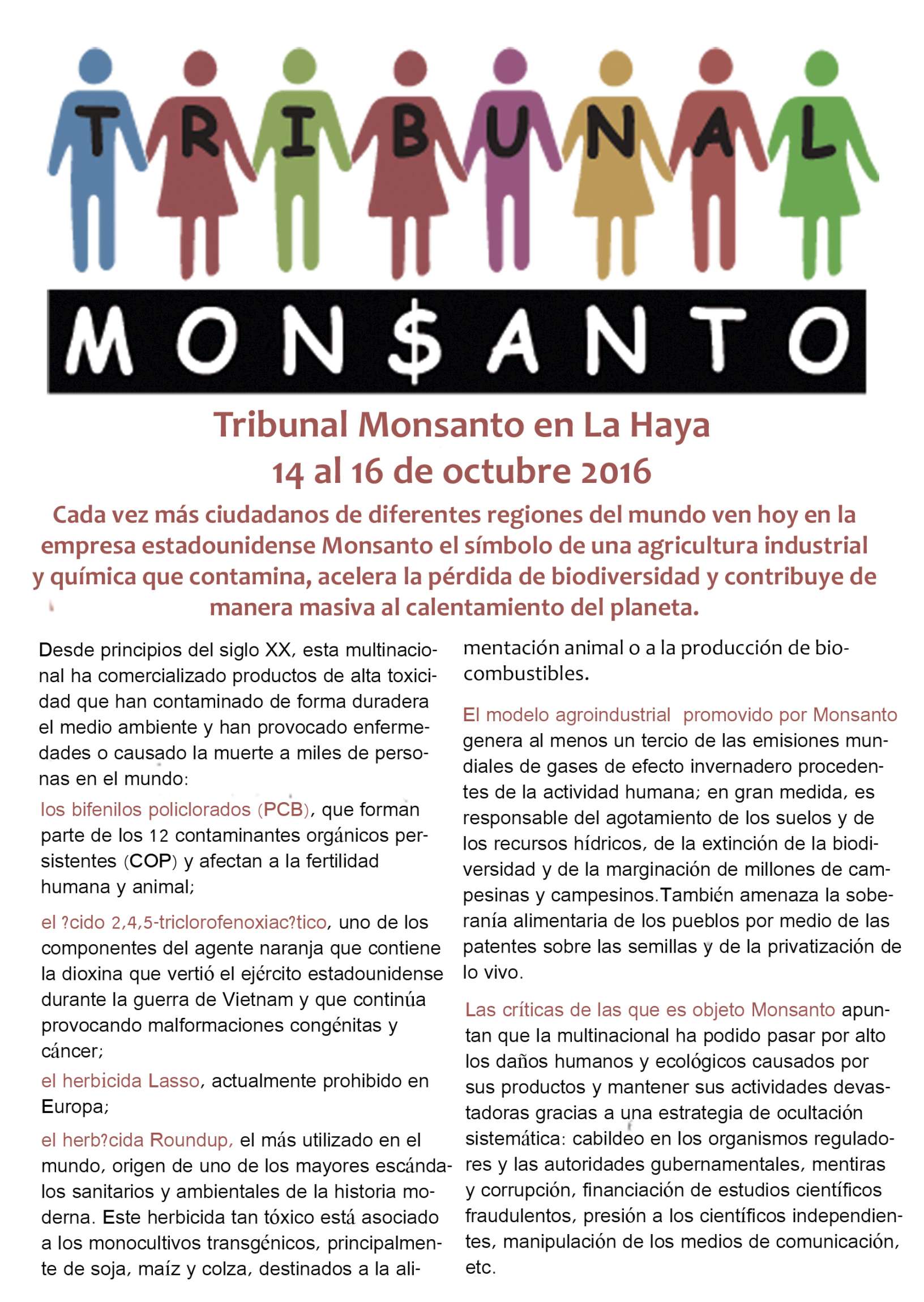 Tribunal Monsanto en La Haya, del 14 al 16 de octubre 2016